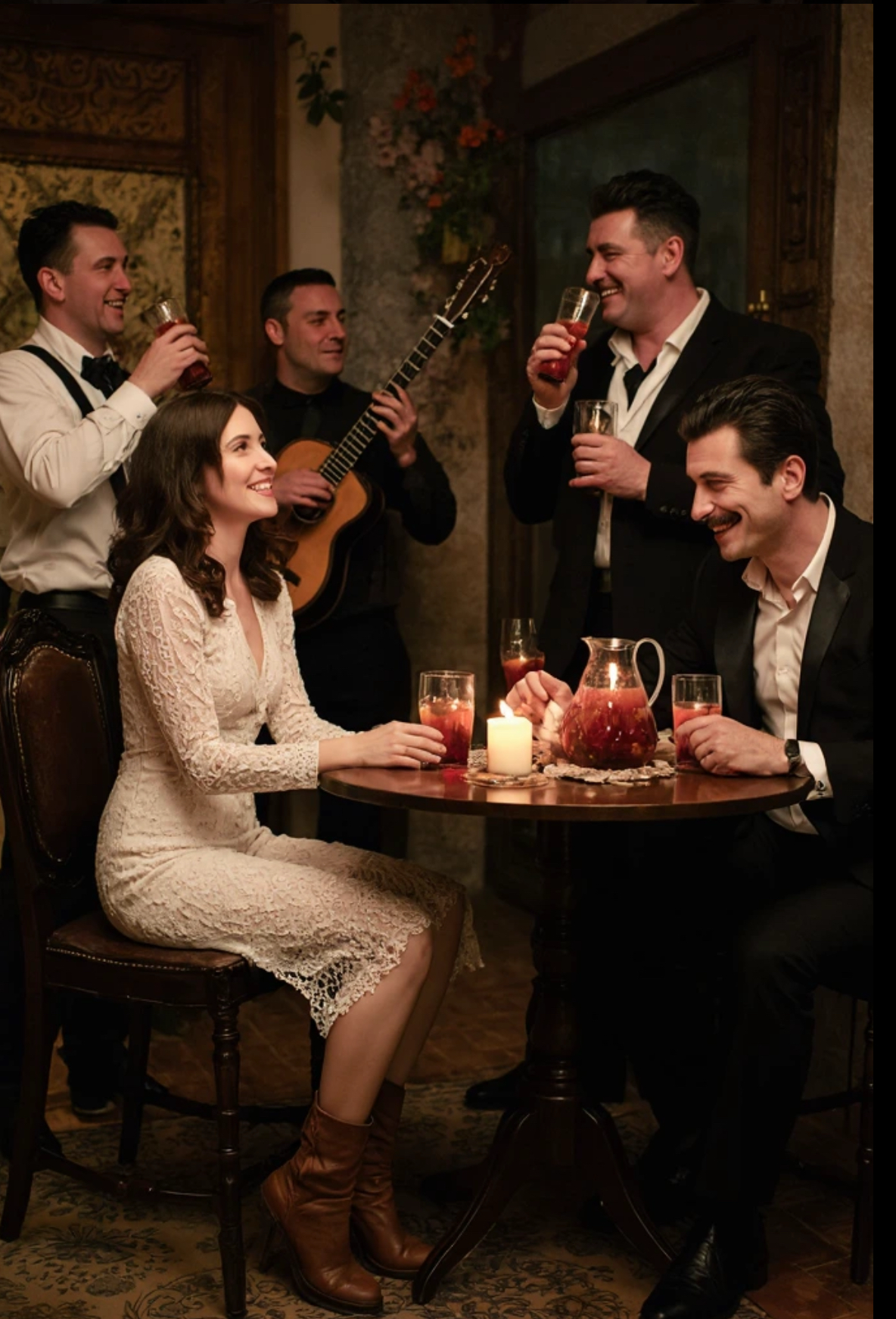 They toasted to Hancho’s new job. They ate, laughed, and giggled as if they were just meeting for the first time. The sangria kept flowing. Four pitchers later, everyone, including the mariachi band, was drunk.